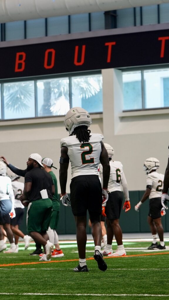 Coral Gables, Fl— The first two days of fall camp unveiled more than expected. On Day one, the young offensive playmakers showcased their serious potential, with Elijah Lofton, Malachi Toney, and Joshua Moore standing out.