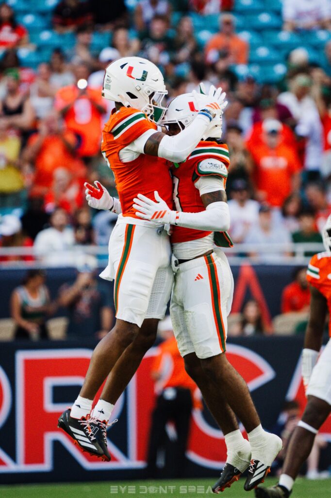 Miami Gardens, Fl— walking into Hard Rock Stadium missing a long list of starters and still controlling every phase of the game from kickoff to the final whistle. Mario Cristobal opened by thanking a loud, energetic crowd and praising a team that refused to flinch despite major injuries, calling the win a true reflection of Miami’s culture and competitive DNA. Carson Beck ran the offense with total command, settling the Hurricanes into a balanced rhythm that kept NC State on their heels all night. “We have really found our rhythm in the pass game and the run game,” Beck said. “We have so many talented playmakers. You never know who is going to pop off.” One of those playmakers was freshman running back Girard Pringle Jr., who stepped into a bigger role and delivered with confidence, saying, “When I get a chance to execute, I execute.” Malachi Toney set the tone early and made it clear Miami expected to dictate the game from the jump. “When the ball is up, it is go time,” he said. The defense stole the night, suffocating NC State with pressure, discipline, and physicality. Safety Jakobe Thomas sparked the entire building with two interceptions, including a pick six that blew the game open. “It feels good to make a play and get the offense rolling. I work for them,” he said. Cristobal praised the defensive front for controlling the line of scrimmage and forcing NC State into a one dimensional attack that exposed quarterback CJ Bailey, who finished with 1 touchdown, two interceptions, and a 13.5 QBR. Akheem Mesidor emphasized that Miami’s performance came from preparation and culture, pointing out how even injured players stay locked in on every call and check. “It is always a next man up mentality,” he said. That mentality showed across the roster. Miami was without OJ Frederique, CJ Daniels, Mark Fletcher, David Blay and others, yet the backups played with confidence and urgency. Cristobal said their focus throughout the week made all the difference. Special teams did their part with Carter Davis adding eleven points and Dylan Joyce pinning NC State deep with precision punting. Every unit showed up. With two games left, Miami is peaking at the right time. The Hurricanes played fast, physical, and locked in, never allowing NC State to gain momentum. If this version of Miami closes out the season, the Hurricanes are positioned to finish strong and carry real confidence into postseason play.