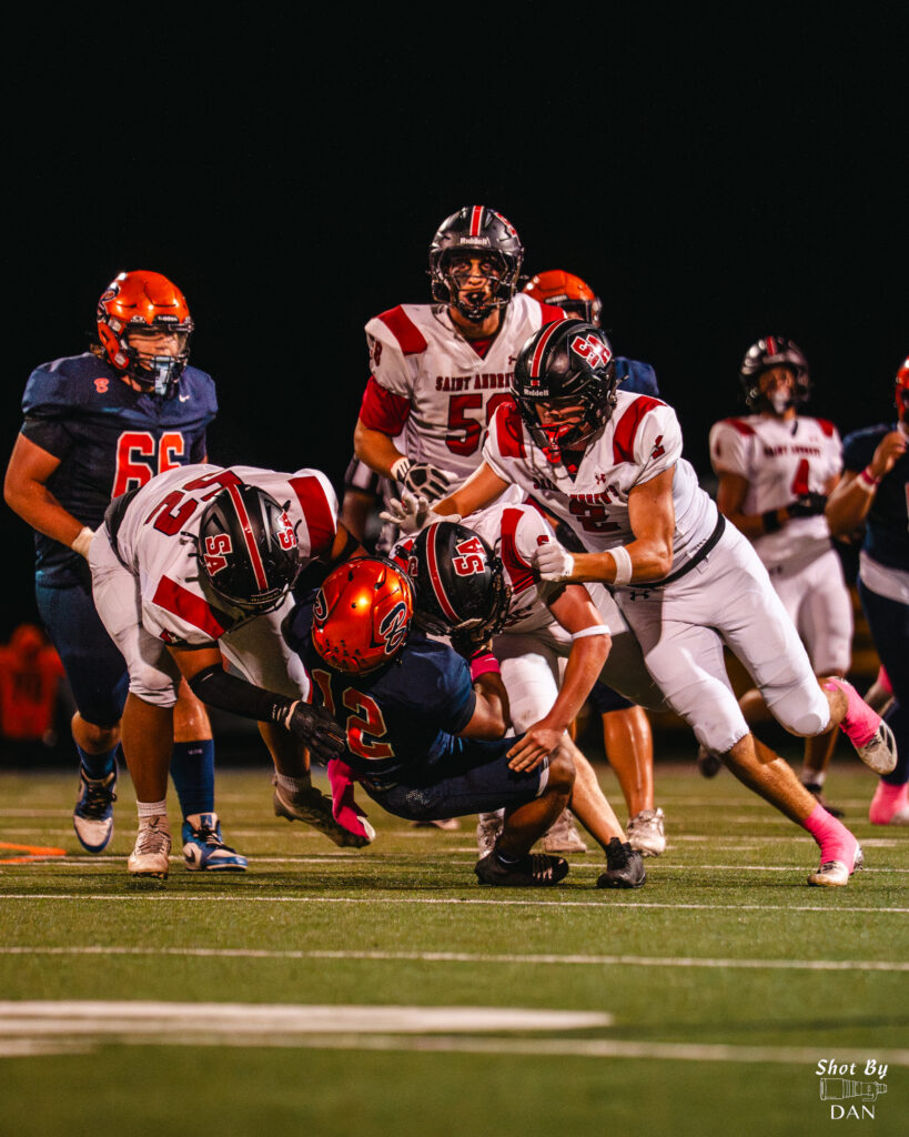 Benjamin’s defense fought to keep the game within reach. Danny Suarez recorded a key sack, and Auggie Dalton made a huge tackle late in the half to prevent another St. Andrews score. Despite their efforts, the Buccaneers went into the locker room trailing 14-3.